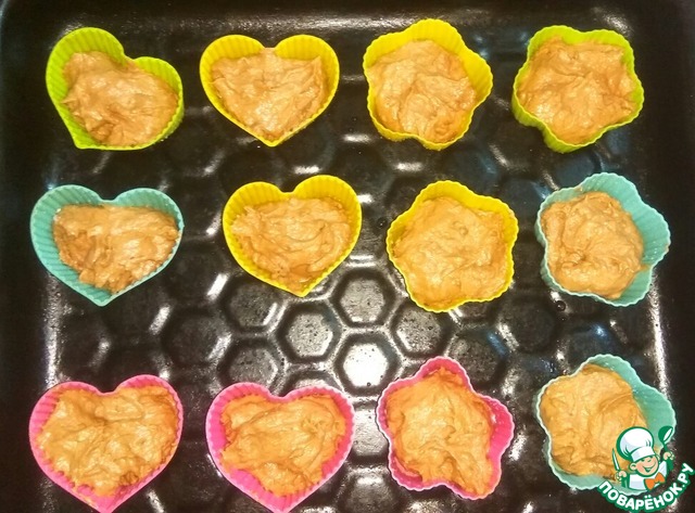 • Распределить тесто по формочкам и выпекать в разогретой до 180 градусов духовке примерно 25 минут.