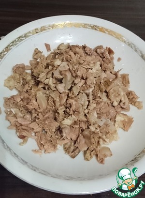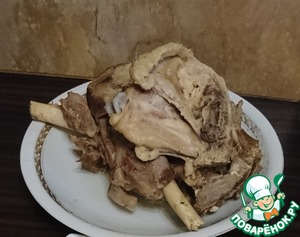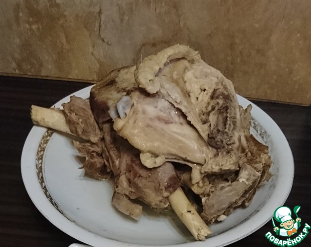 • Когда мясо остынет, отделяем его от кости и режем кубиками.
