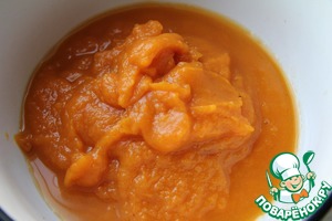 Подготовить тыквенное пюре: потушить на плите или приготовить в микроволновке. Взбить блендером.