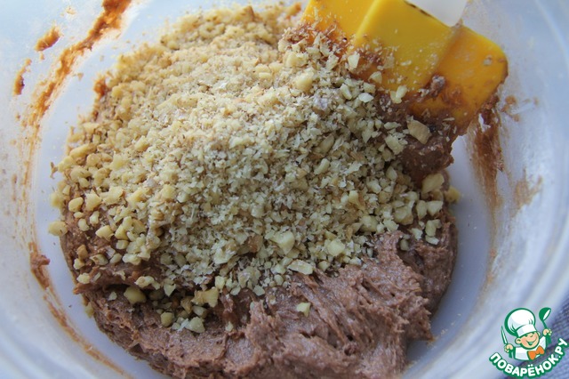 Орехи порубить и добавить в тесто. Перемешать.