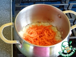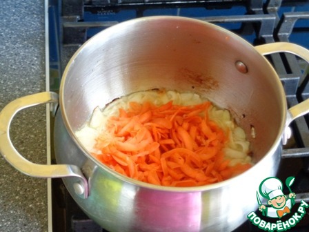 Добавить нашинкованную морковь, продолжить жарить минут 7.