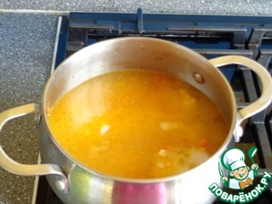 Залить половиной нормы мясного бульона. Поварить 15 минут с момента закипания.