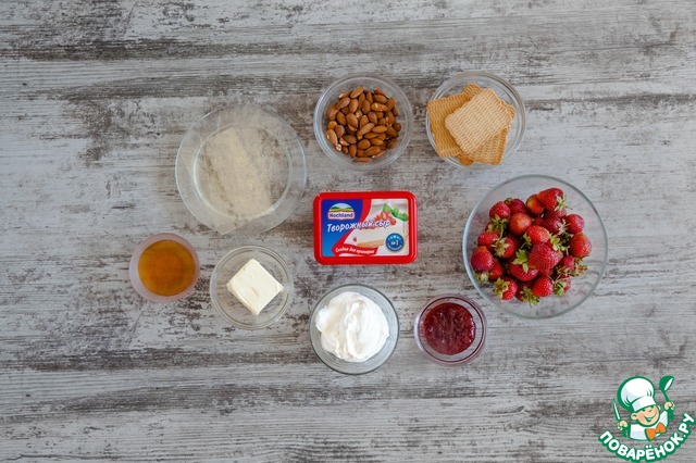 Ингредиенты для «Клубничный чизкейк без выпечки»: