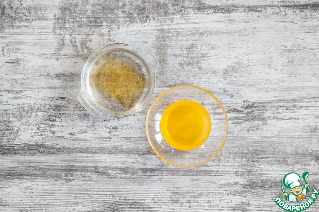 Для начинки размягчите масло до комнатной температуры. Замочите желатин в холодной воде на 10 мин. Нагрейте мед до кипения, отожмите желатин, добавьте к меду, перемешайте.