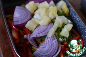 Добавить кусочки ананаса к овощам. -