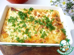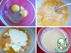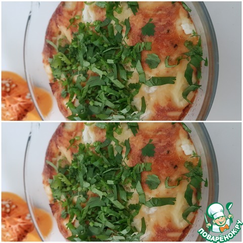 Для заливки, яйца взбить с солью, мускатным орехом.