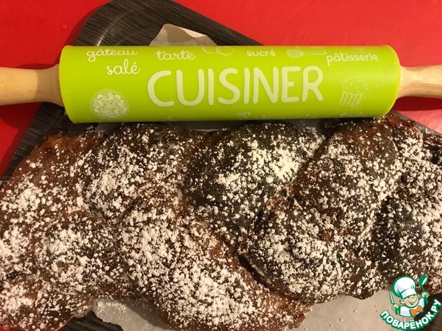 Перед подачей присыпать сахарной пудрой. Здесь отлично вписалась сахарная пудра со вкусом орехов.