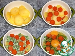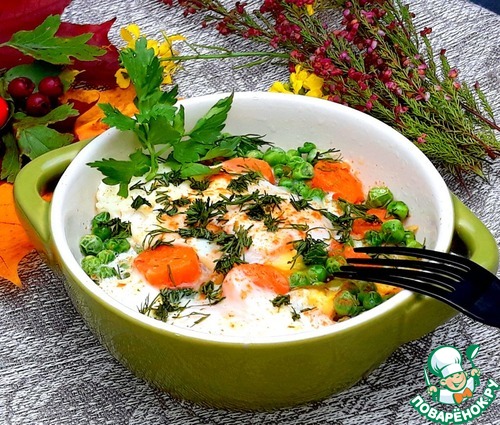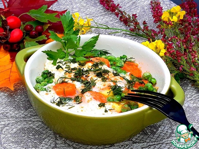 и положила в форму. Насыпала замороженный горошек