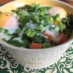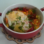и разбила яйца. Добавила измельчённые коренья, перец