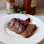 Вино использовала домашнее, укус виноградный. Ягод не было, добавила горстку изюма в маринад и сварила его вместе с изюмом.