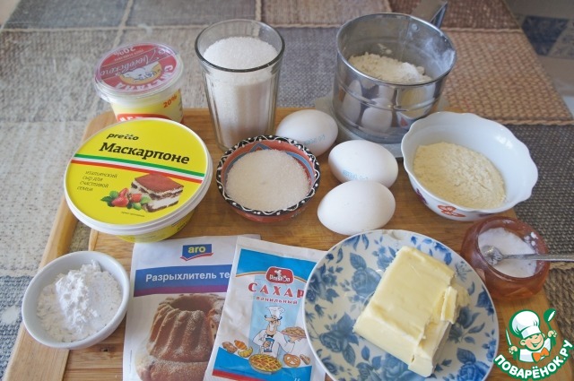 Ингредиенты для «Творожный пирог со свежими персиками»:
