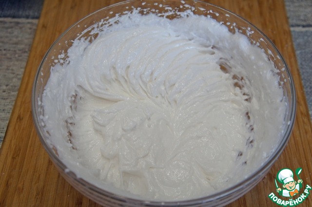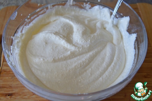 Все это развести сметаной и затем аккуратно ввести взбитые белки.