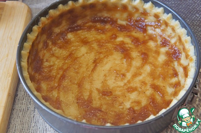 Раскатать его в пласт и выложить в разъемную форму для запекания d 23-24 см, оформив высокий бортик. Поставить форму в холодильник на 1 час.