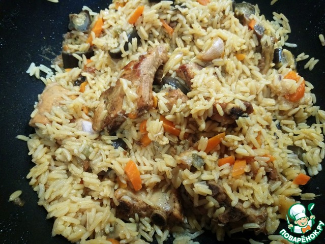 Рецепт «Плов со свиными ребрами и баклажанами»: