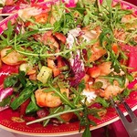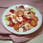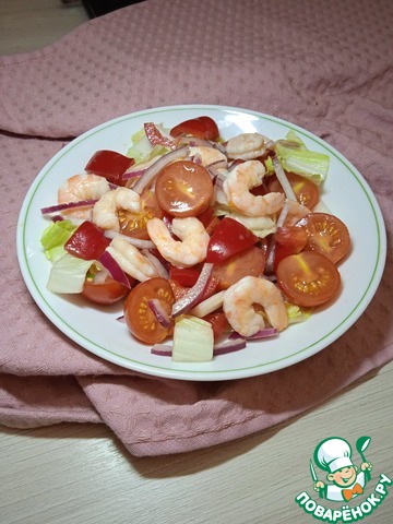 Креветки очистить и либо нарезать, либо использовать целиком, добавив их к овощам (несколько креветок с хвостиками оставить для украшения).