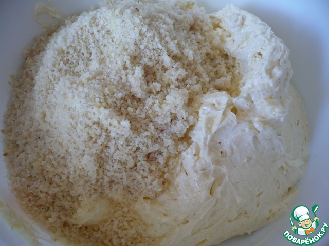 Затем добавьте приготовленную миндальную муку и взбейте до однородности.