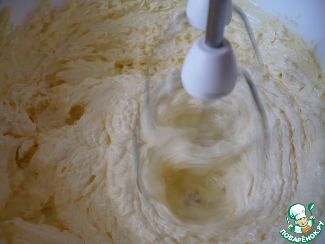 Сливочное масло (комнатной температуры) взбить с оставшимся сахаром до пышности.