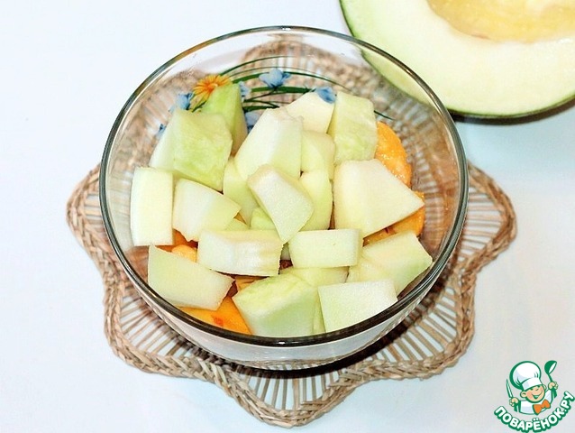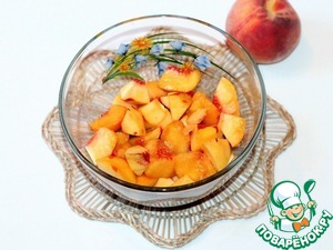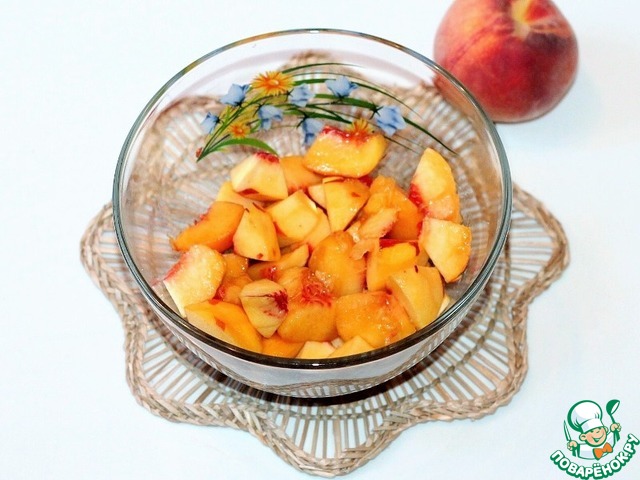 • 2. Персики очистить от кожуры, удалить косточки и порезать дольками.
