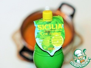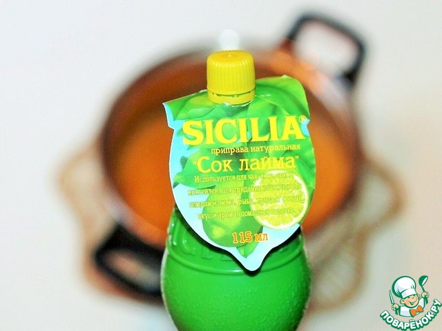 • 7. Затем добавляем в соус сок лайма SICILIA и корректируем вкус. Соус по вкусу кисло-сладкий с приятной горчинкой. Варим пюре на слабом огне, периодически помешивая, доводим до кипения и до небольшого уваривания соуса. Не перевариваем.