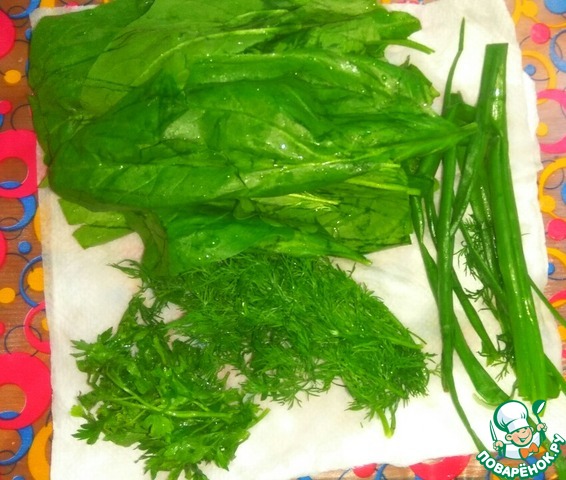 Всю зелень помыть, промокнуть полотенцем. Мелко нарезать. -