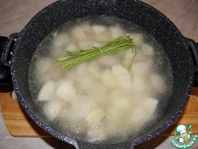 Вливаем 1,5 литра холодной питьевой воды, доводим до кипения и варим минут 20