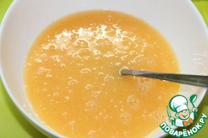 В другой посуде смешать вилкой яйца, растительное масло, сахар и сахар с корицей.