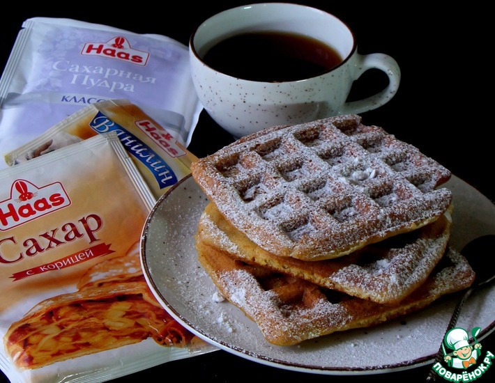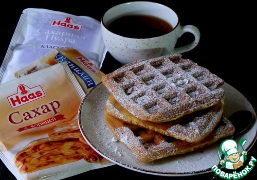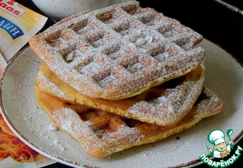 Выпекать вафли до румяной корочки, в зависимости от мощности вафельницы, в течение 2-3 минут.