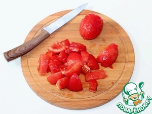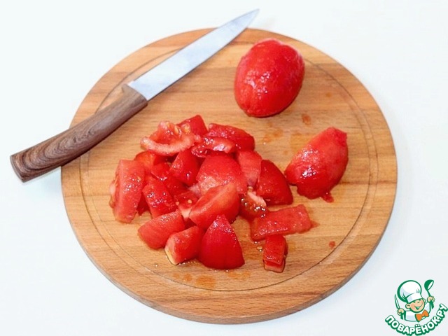 3. Затем помидоры очищаем от шкурки и нарезаем дольками.