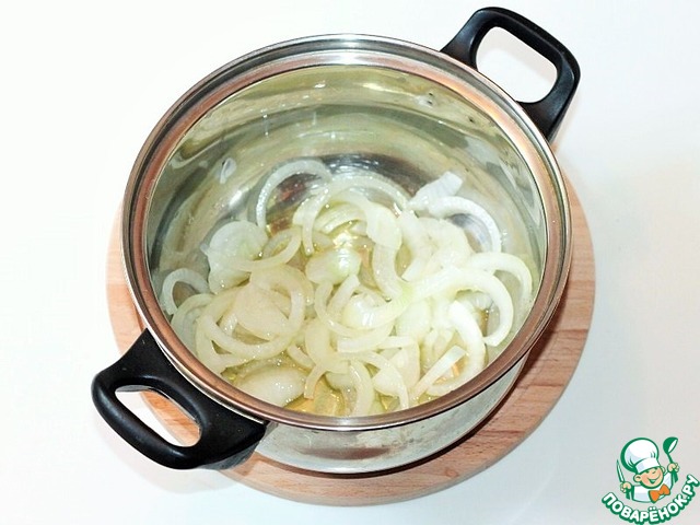 8. Очищенный репчатый лук нарезаем полукольцами.