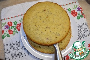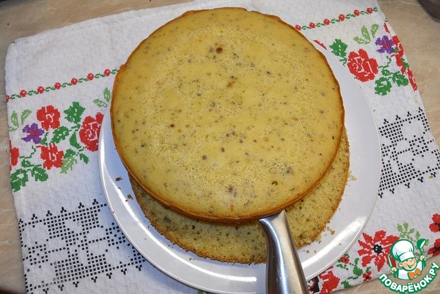 Кекс разрезать пополам широким острым ножом.