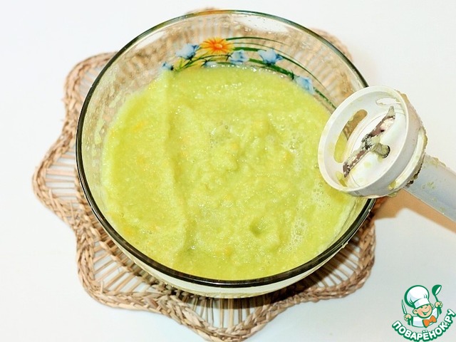 8. Переливаем кабачковую смесь в кастрюлю с толстым дном и посыпаем сверху квиттином и хорошо перемешиваем.