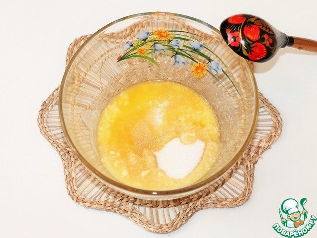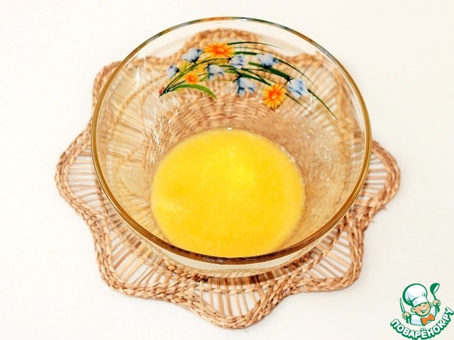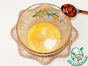 5. Желтки отделить от белков и добавить в масленую смесь, перемешать. Белки отправить в холодильник.
