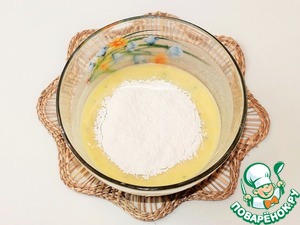 2. Смешать в миске муку и разрыхлитель, просеять 2 раза.