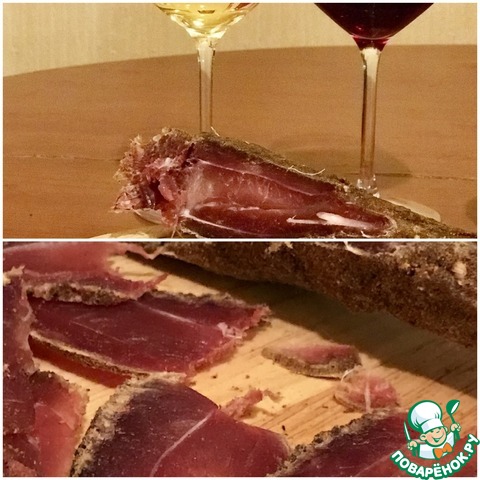 Вяленая голень или индюшачий хамон. Соленое, пряное блюдо, которое прекрасно подойдет, как к пиву, так и к вину.