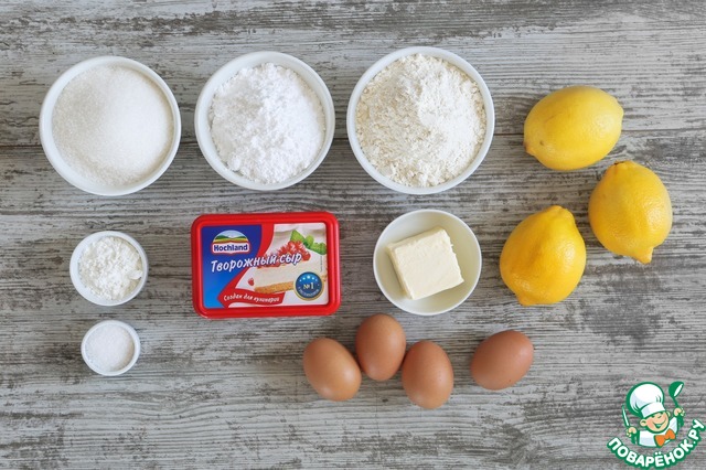 Ингредиенты для «Лимонные пирожные с сырной глазурью»: