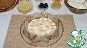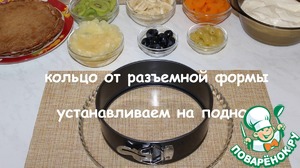 Собираем торт. Кольцо от разъемной формв устанавливаем на поднос.