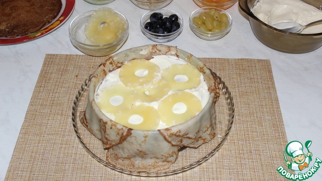 Предлагаю приготовить очень вкусный, легкий торт из блинчиков. Такой тортик будет прекрасным дополнением к праздничному столу.