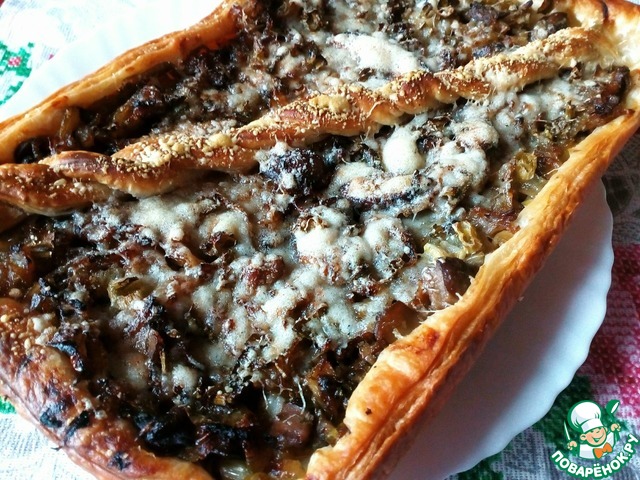 Рецепт «Пирог с грибами на слоеном тесте»: