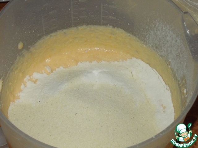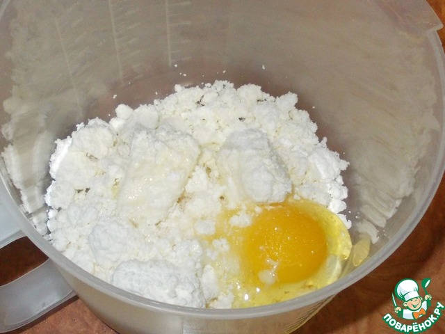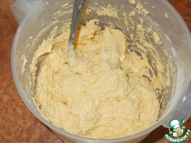 Тыкву вместе с выделившимся соком выкладываем к творогу.