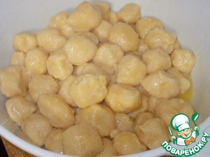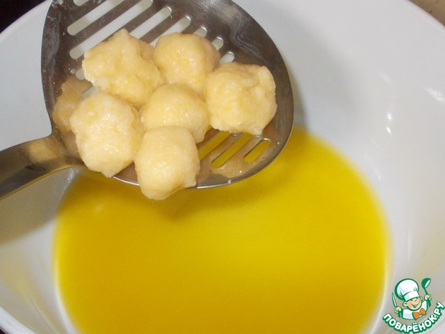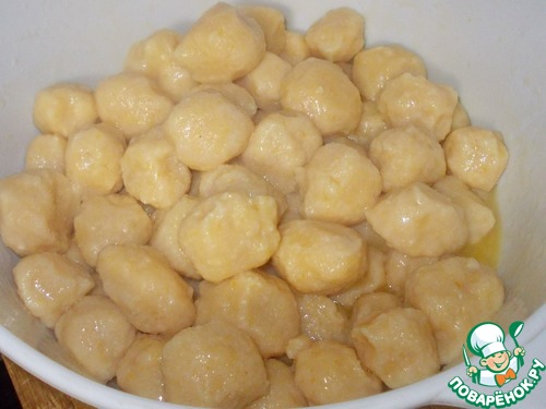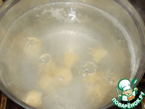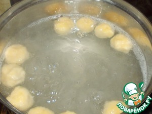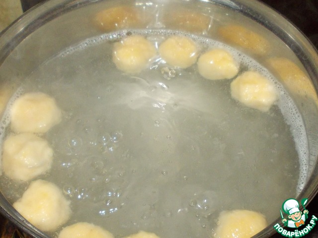 Заготовки можно сразу отправлять в воду, если она кипит, или сделать некоторое количество заготовок, выложив их на тарелку смоченную водой. Если лепить нет времени или желания, то можно тесто набирать чайной ложкой и сразу в кипящую подсоленную воду. Но скатанные шарики смотрятся лучше!