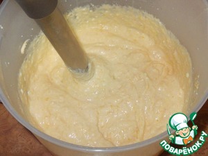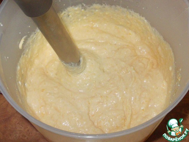 Погружным блендером прорабатываем творог и тыкву до однородного состояния.