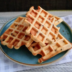 Нагрейте хорошо вафельницу для толстых вафель, смажьте её растительным маслом. Выпекайте вафли обычным способом.