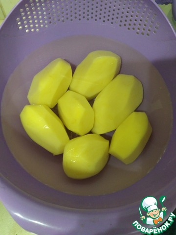 Картофель чистим, заливаем водой. Его мы будем класть целым!