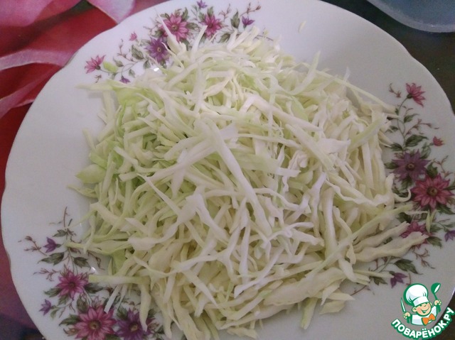 Капусту режем, у меня она зимняя, поэтому класть её будем после картофеля.