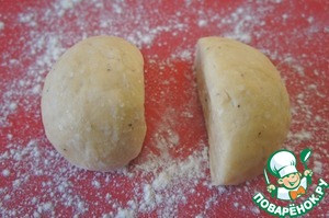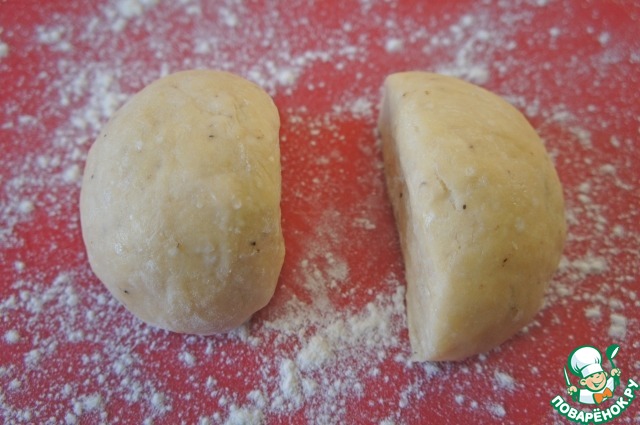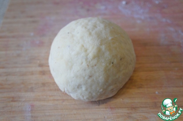 Вот такой небольшой колобок у нас получился. Завернуть его в пищевую пленку и оставить в прохладном месте на 1 час.