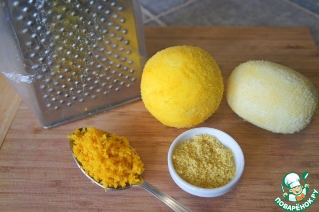 Пока тесто охлаждается, натереть цедру лимона и апельсина.