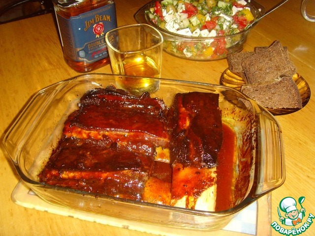 И так, что же это за "но"... Время вашего личного участия в приготовлении этого блюда составит не больше двадцати минут, но (это то самое "но") блюдо готовится около девяти часов... Целых девять часов ожидания в предвкушении аппетитнейших, ароматнейших, потрясающе вкусных рёбрышек!!! Не каждый сможет решиться на такой героический поступок, но всё же тот, кто рискнёт, будет вознаграждён с лихвой!!! Я ранняя пташка, не люблю валяться в постели и по этому поступаю следующим образом - поздним вечером закладываю рёбра в электродуховку и рано утром получаю вкуснющий готовый продукт... Всем отважившимся на героический поступок респект и уважение, и приступим...