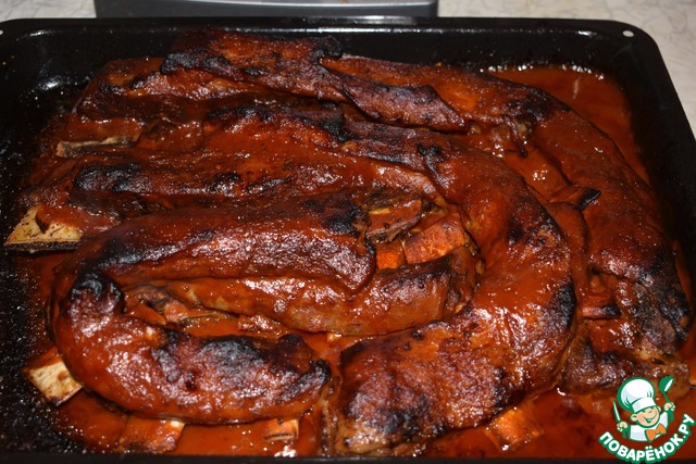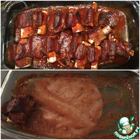 Смазываем ребра сверху получившимся соусом. Запекаем в духовке (уже без фольги) 30 минут при температуре 180 градусов.