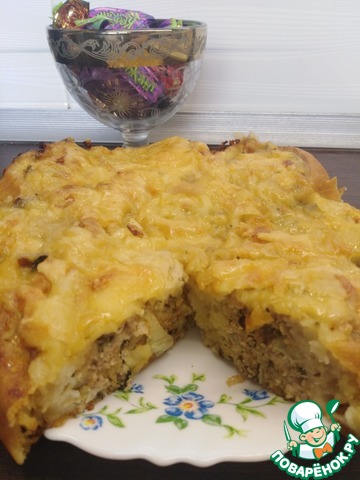 Пирог получился очень вкусный, тесто интересное и очень нежное. Но из-за количества жирных ингредиентов на ужин тяжеловат. Не успела сфотографировать - все стрескали, осталась только грязная посуда . Рецепт сохраню, можно экспериментировать (вместо сыра к фаршу добавить морковку или тыкву).