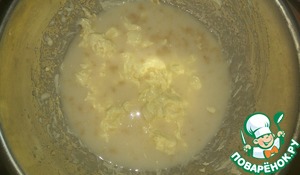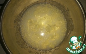 Молоко подогреть с мягким маргарином до тёплого состояния.